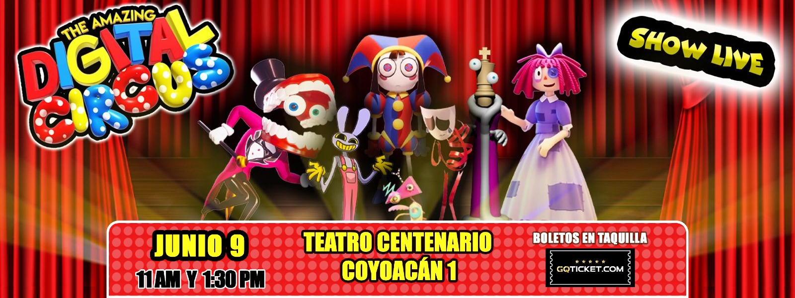 La serie de animación más viral del año en la web llega al teatro con una fantástica adaptación que podrán disfrutar chicos y grandes. Acompaña a Pomni, Jax, Ragatha, Ganger, Kinger, Zooble y Caine en esta divertidísima aventura, mientras intentan encontrar la salida de este circo digital lleno de misterios. Disfruta con esta emocionante experiencia teatral que será garantía de risas en todos los presentes.La serie de animación más viral del año en la web llega al teatro con una fantástica adaptación que podrán disfrutar chicos y grandes. Acompaña a Pomni, Jax, Ragatha, Ganger, Kinger, Zooble y Caine en esta divertidísima aventura, mientras intentan encontrar la salida de este circo digital lleno de misterios. Disfruta con esta emocionante experiencia teatral que será garantía de risas en todos los presentes.La serie de animación más viral del año en la web llega al teatro con una fantástica adaptación que podrán disfrutar chicos y grandes. Acompaña a Pomni, Jax, Ragatha, Ganger, Kinger, Zooble y Caine en esta divertidísima aventura, mientras intentan encontrar la salida de este circo digital lleno de misterios. Disfruta con esta emocionante experiencia teatral que será garantía de risas en todos los presentes.La serie de animación más viral del año en la web llega al teatro con una fantástica adaptación que podrán disfrutar chicos y grandes. Acompaña a Pomni, Jax, Ragatha, Ganger, Kinger, Zooble y Caine en esta divertidísima aventura, mientras intentan encontrar la salida de este circo digital lleno de misterios. Disfruta con esta emocionante experiencia teatral que será garantía de risas en todos los presentes.La serie de animación más viral del año en la web llega al teatro con una fantástica adaptación que podrán disfrutar chicos y grandes. Acompaña a Pomni, Jax, Ragatha, Ganger, Kinger, Zooble y Caine en esta divertidísima aventura, mientras intentan encontrar la salida de este circo digital lleno de misterios. Disfruta con esta emocionante experiencia teatral que será garantía de risas en todos los presentes.La serie de animación más viral del año en la web llega al teatro con una fantástica adaptación que podrán disfrutar chicos y grandes. Acompaña a Pomni, Jax, Ragatha, Ganger, Kinger, Zooble y Caine en esta divertidísima aventura, mientras intentan encontrar la salida de este circo digital lleno de misterios. Disfruta con esta emocionante experiencia teatral que será garantía de risas en todos los presentes.La serie de animación más viral del año en la web llega al teatro con una fantástica adaptación que podrán disfrutar chicos y grandes. Acompaña a Pomni, Jax, Ragatha, Ganger, Kinger, Zooble y Caine en esta divertidísima aventura, mientras intentan encontrar la salida de este circo digital lleno de misterios. Disfruta con esta emocionante experiencia teatral que será garantía de risas en todos los presentes.La serie de animación más viral del año en la web llega al teatro con una fantástica adaptación que podrán disfrutar chicos y grandes. Acompaña a Pomni, Jax, Ragatha, Ganger, Kinger, Zooble y Caine en esta divertidísima aventura, mientras intentan encontrar la salida de este circo digital lleno de misterios. Disfruta con esta emocionante experiencia teatral que será garantía de risas en todos los presentes.